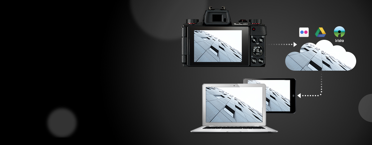 Користете ја услугата за синхронизација на слики за автоматски да направите резервна копија од новите слики во услугите Cloud како што се Flickr, Google Drive и irista или, пак, веднаш префрлете ги во вашиот паметен телефон преку Wi-Fi со динамичкиот NFC. Снимајте одлични групни снимки со безжична далечинска контрола на фотоапаратот преку вашиот паметен телефон или таблет-уред. Полнете го фотоапаратот на едноставен начин преку USB.