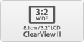 3,2” Clear View II LCD екран со висока резолуција и 1.040k точки овозможува едноставно и прецизно прегледување на сликите и видео снимките. Неверојатно издржливата структура со антирефлективно и зацврстено стакло ги спречува одблесоците дури и при најсилна сончева светлина.
