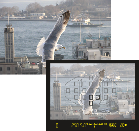 Професионалните и разновидни контроли ви овозможуваат да го контролирате фотоапаратот додека фотографирате. Интелигентниот визир ви овозможува да ги погледнете информациите за фокусот и експозицијата, а LCD екранот од горната страна ви овозможува брзо да ги проверите поставките и брзо да ги прилагодите со задното контролно вртливо копче. LCD екранот на допир со променлив агол ви помага при обликувањето на кадарот на вашите снимки и при фотографирањето од различни агли.